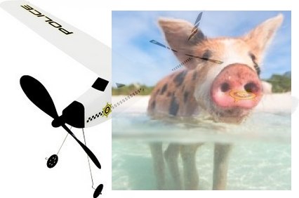 Szybowiec policyjny z napędem gumowym wykonany z pianki. Dzięki sztywności pianki rzutka ta leci prosto i daleko, jednocześnie świetnie wyglądając.